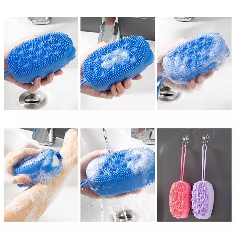 Este modelo de esponja é especialmente pra banho, pois ela possui cerdas bem macias, assim servindo para massagem. E dentro dela possui um recepiente para colocar sabonete liquido, ou shampoo.